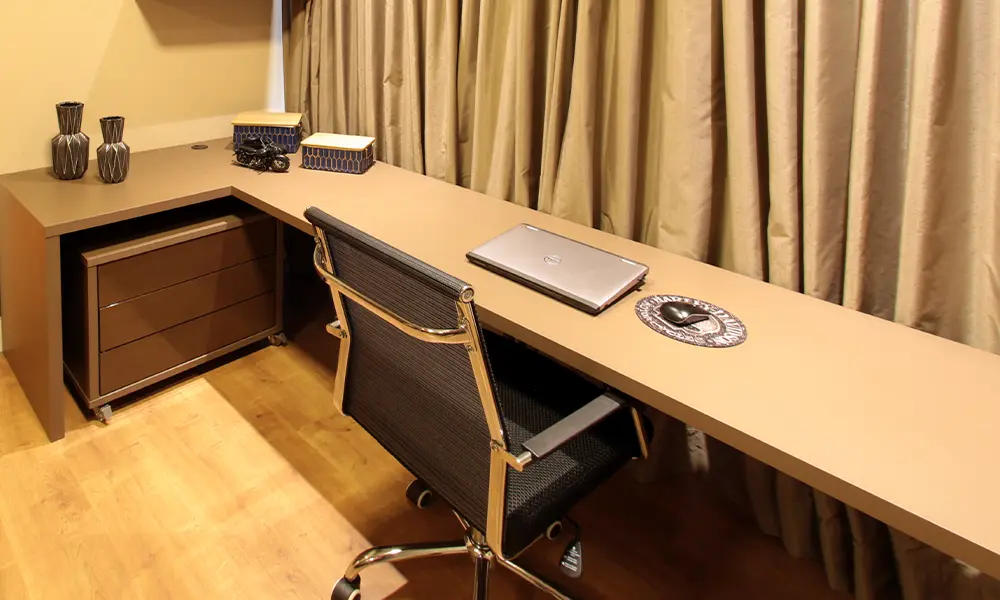 Acústica e ergonomia definem escritórios que unem elegância, foco e produtividade em ambiente nobre ideal.